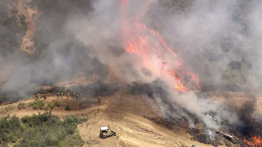 Fire crews battled a blaze that erupted near Malibu on May 19, 2017. (Credit: KTLA)