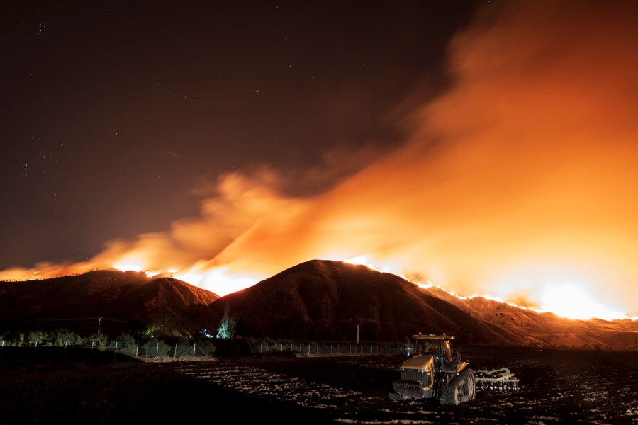 Santa Paula, CA - OCTOBER 31: The Maria Fire burns on a hillside as it expands up to 8,000 acres on its first night on November 1, 2019. The fire was among a handful of blazes driven by gusty Santa Ana winds in later 2019. (Photo by Rio Petersen/Getty Images)
