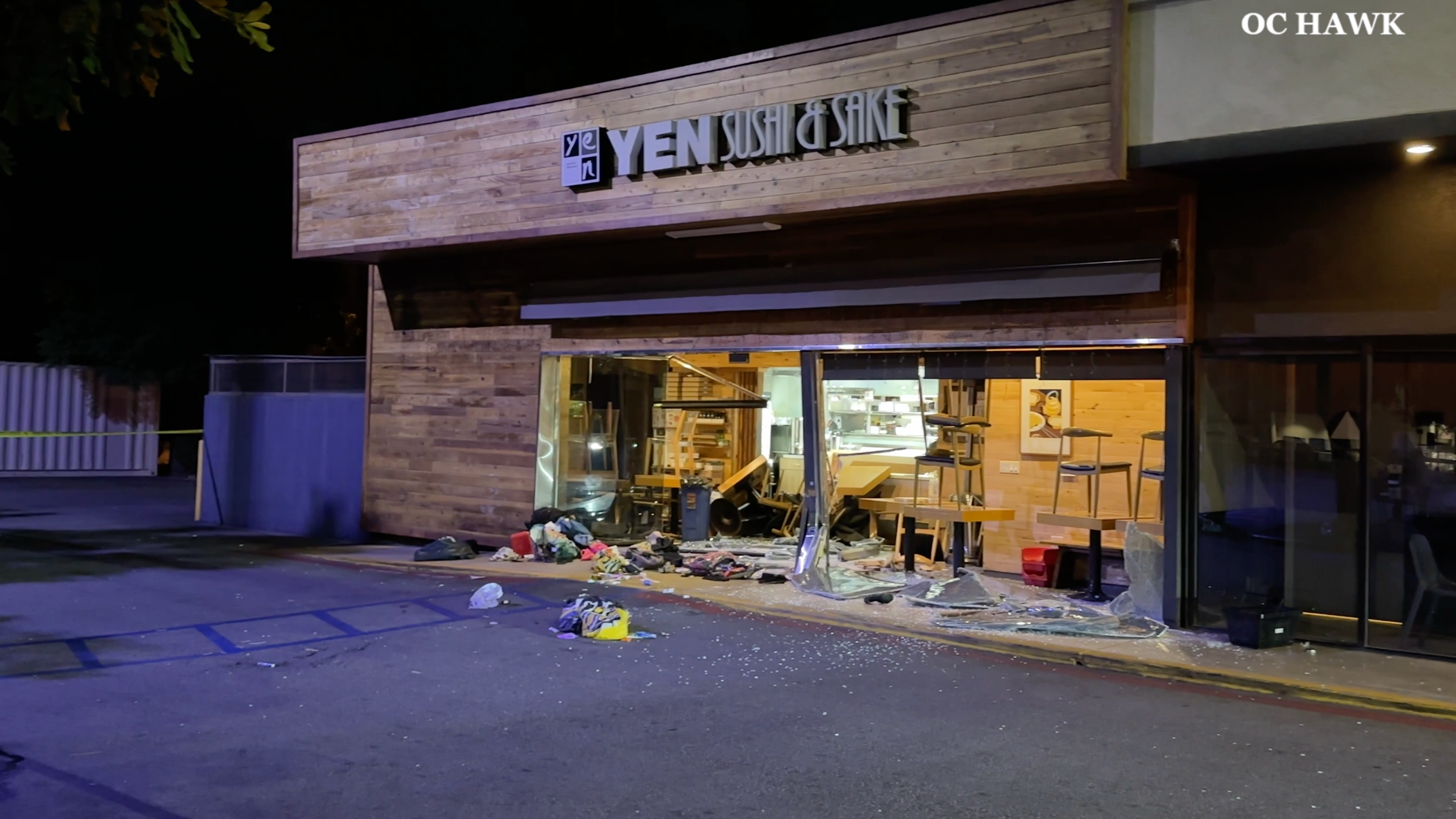 An employee for Yen Sushi and Sake said the driver appeared to intentionally drive into the buildings and even put some of their belongings in front of the restaurant before possibly trying to light them on fire. A gas can was apparently found at the scene.