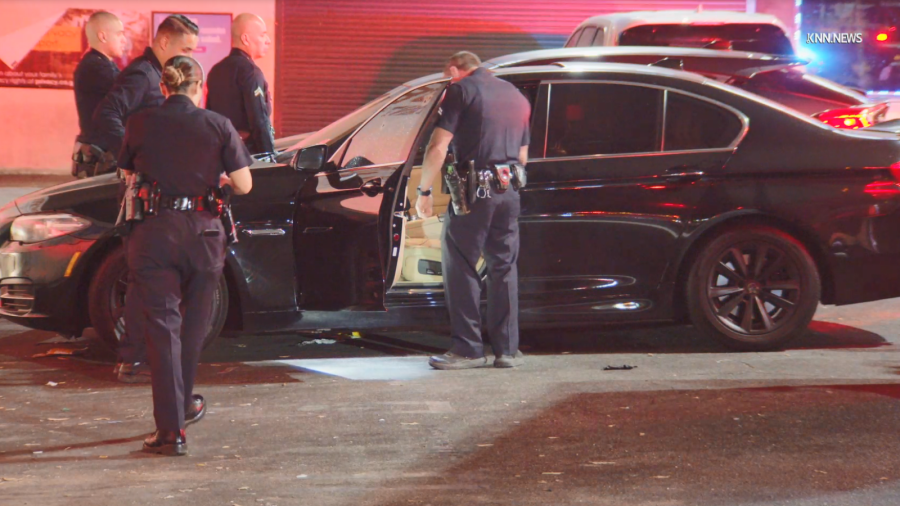 “The victim told officers she was in her vehicle when a male suspect fired six gunshot rounds towards her car,” an LAPD spokesperson confirmed to KTLA. “One of the bullets struck the victim in the leg…[she] fled the scene in her vehicle and then called police.”