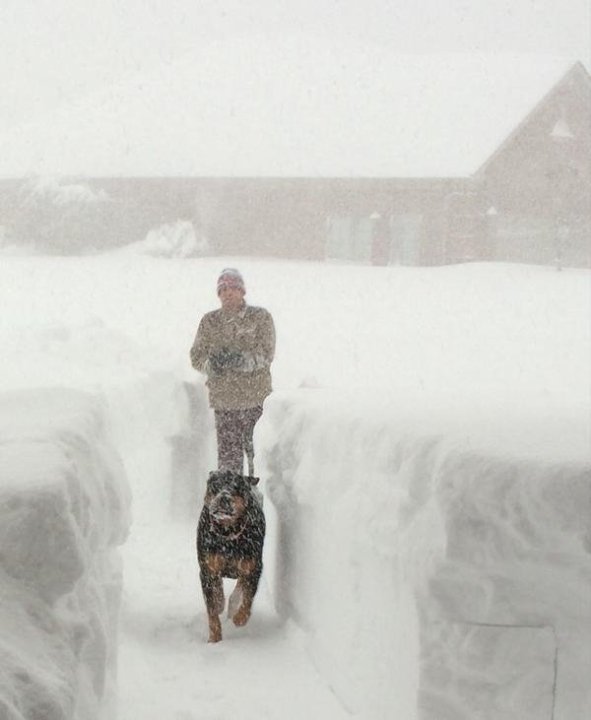 “The snow is coming down so hard you can’t see out the window,” she said. “We’ve cleared our driveway so many times that we’ve run out of places to put the snow.”