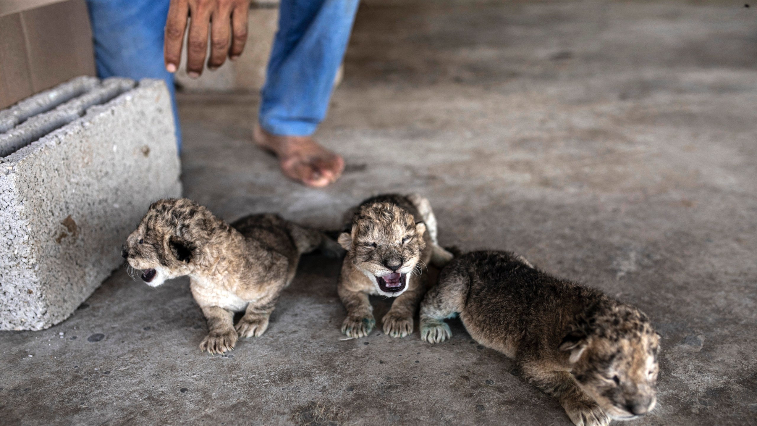 Veterinarian Mahmoud al-Sultan said each cub weighed about 700 grams. He said he felt lucky the birth was successful despite the deafening sound of constant explosions during three days of fighting. The cubs’ mother had suffered miscarriages in the past, said al-Sultan.