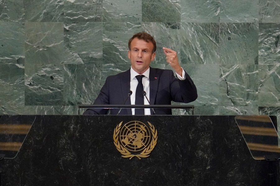 Speaking to the U.N. General Assembly gathering of world leaders, Macron also insisted that any negotiation to end the more than six-month-old war can succeed only “if Ukraine’s sovereignty is respected, its territory liberated and its security protected.”