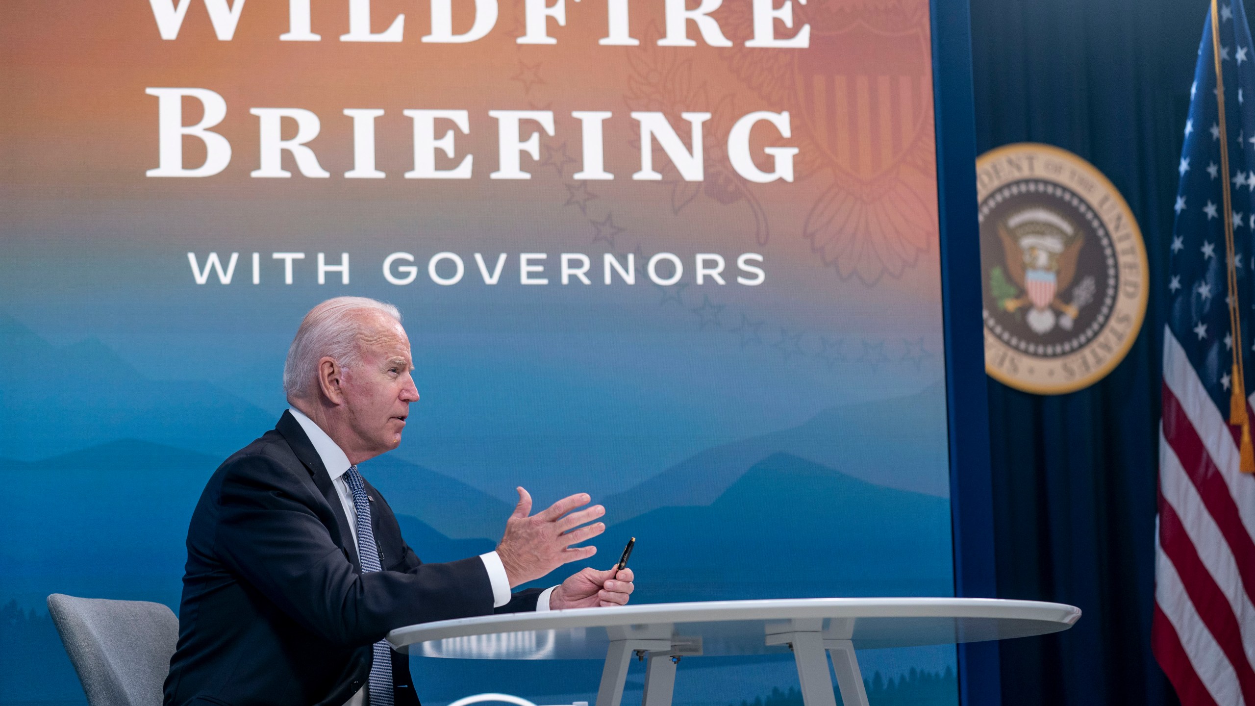 “Since our last meeting, the number of large uncontained wildfires has nearly doubled to 66 fires,” Biden said. “The number of firefighters on the job to battle them has tripled. Over 3.4 million acres have already burned.”