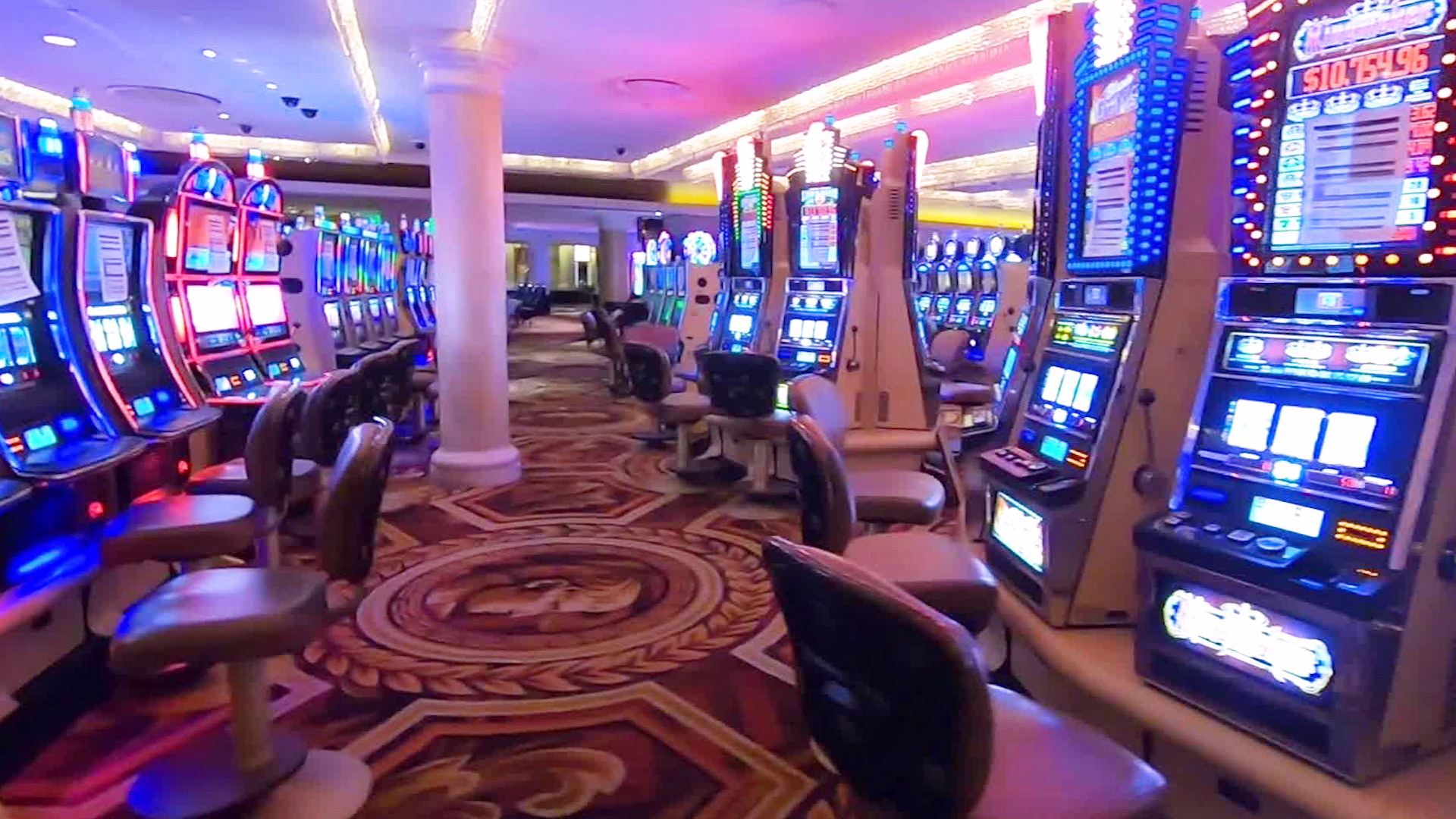 “We will be deactivating every other slot machine and removing the stool from the game,” he said, standing at an darkened slot machine at the center of three-machine row. “A customer can’t even stand here and play this game because the game’s not even active, and so we will do that throughout the whole floor.”