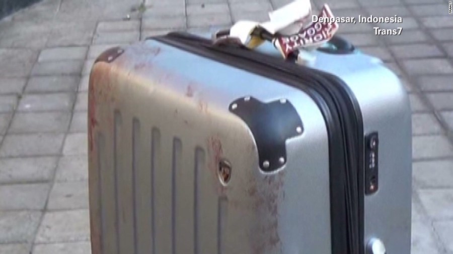 Two smaller suitcases were found in the St. Regis Bali Resort garden. Both contained hotel towels with blood on them, according to police.