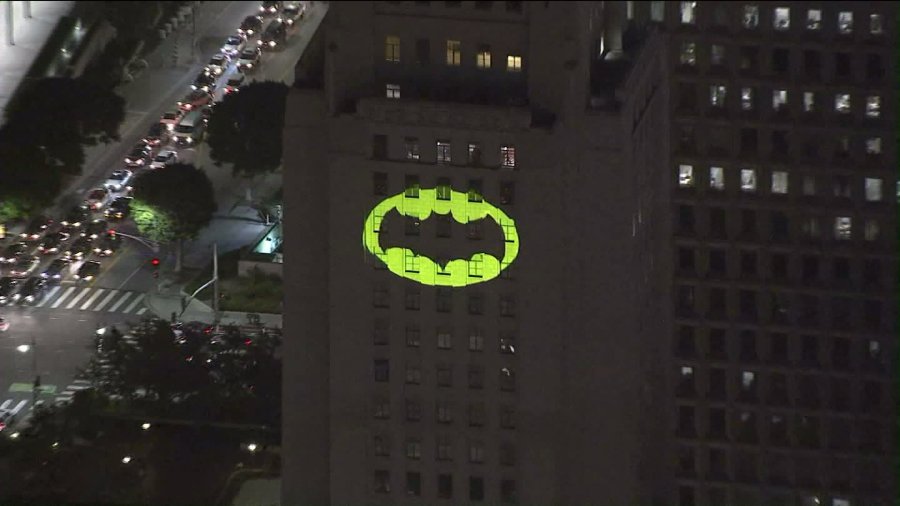 The walls of City Hall lit up with the famed bat insignia back in 2017 to honor 60s television Batman, actor Adam West, when he died at age 88.