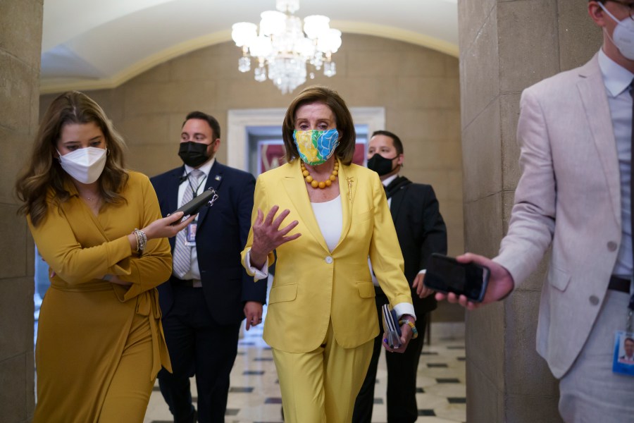 Speaker of the House Nancy Pelosi, D-Calif., leaves the chamber after urging advancement of the John Lewis Voting Rights Advancement Act, named for the late Georgia congressman who made the issue a defining one of his career, at the Capitol in Washington, Tuesday, Aug. 24, 2021. (AP Photo/J. Scott Applewhite)