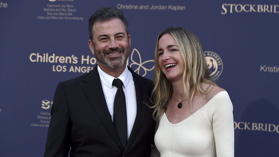 Jimmy Kimmel, left, and Molly McNearney arrive at the 2022 Children's Hospital Los Angeles Gala, Saturday, Oct. 8, 2022, at Barker Hanger in Santa Monica, Calif. (Photo by Jordan Strauss/Invision/AP)