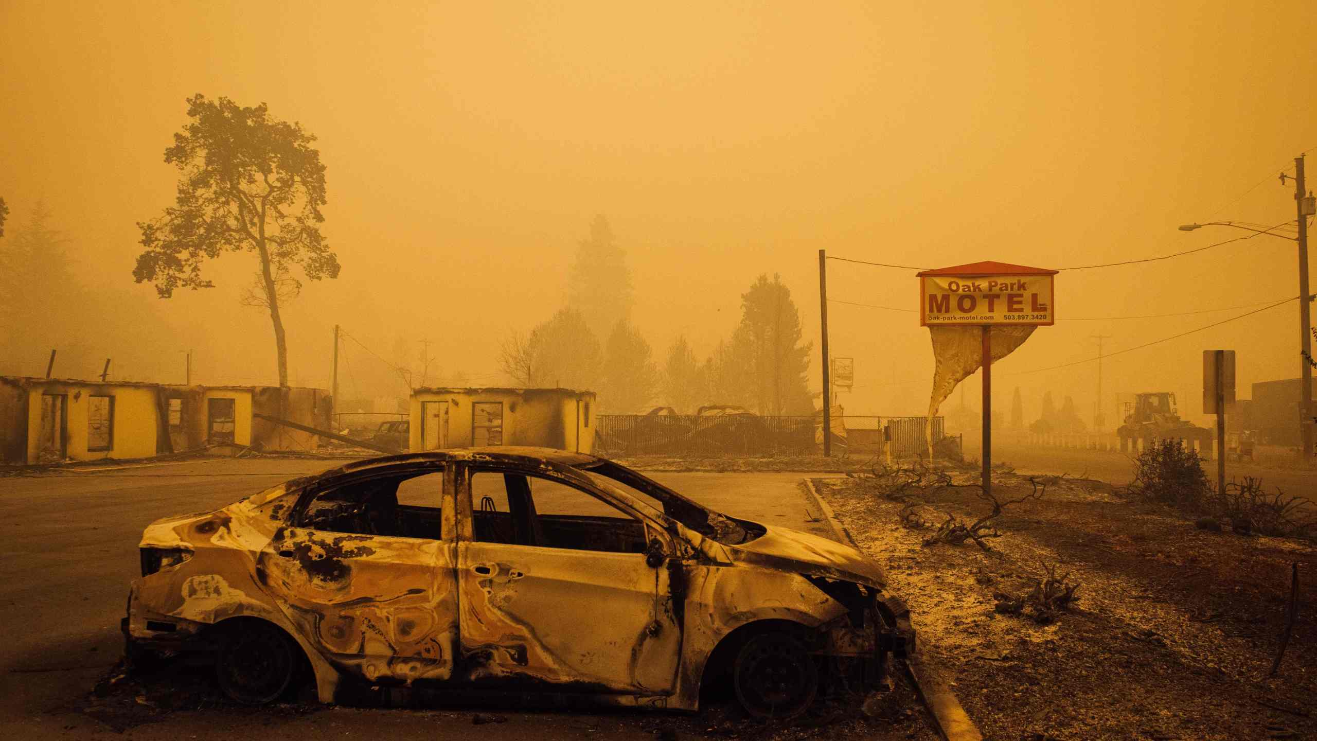 In southern Oregon near the California state line, much of the small town of Phoenix was wiped out. A mobile home park, houses and businesses were burned, leaving twisted remains on charred ground.