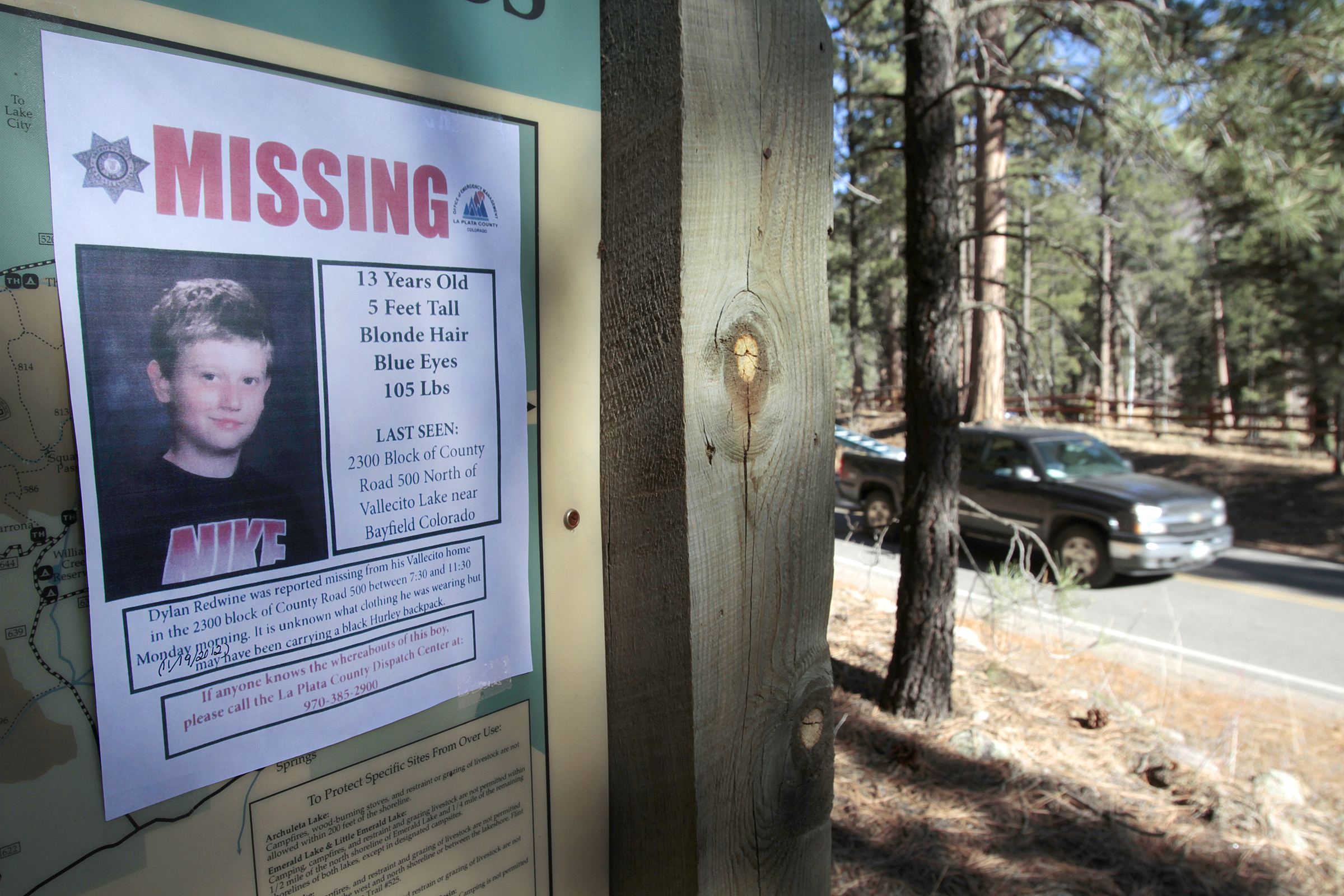 The father, Mark Redwine, is being tried in the killing of his son, Dylan Redwine. The boy disappeared in the Vallecito area near Durango during a court-ordered visit during his Thanksgiving break, authorities said. Mark Redwine told investigators he left his son alone at home to run errands and returned to find him missing, The Denver Post reported.