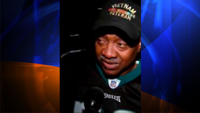 Sonny Forriest, a Vietnam veteran Jr., was performing outside a Philadelphia Eagles game Oct. 12, 2014, when a woman stole his prosthetic leg. (Credit: CBS Philly)