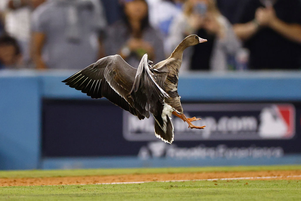 It might have been the first goose in a postseason game at Dodger Stadium since Hall of Fame reliever Goose Gossage pitched for the New York Yankees against the Dodgers in the 1981 World Series.