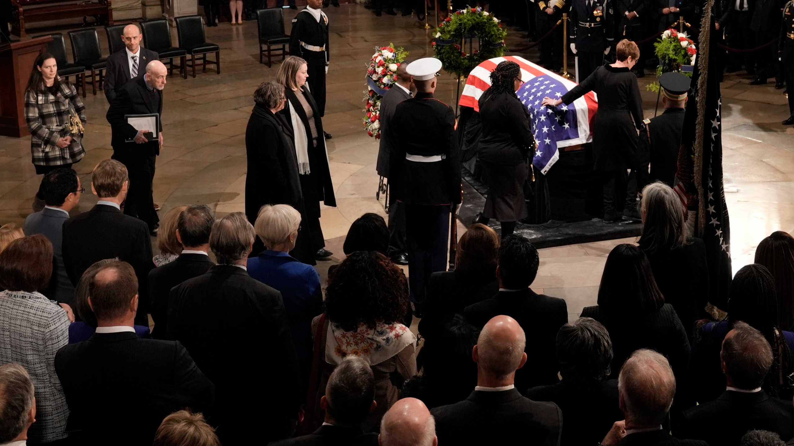 A bipartisan delegation of members of Congress were led into the Capitol Rotunda by Sens. Raphael Warnock and Jon Ossoff, both Democrats who represent Carter’s home state. Harris, members of President Joe Biden’s cabinet and U.S. Supreme Court justices John Roberts, Brett Kavanaugh and Elena Kagan were present.
