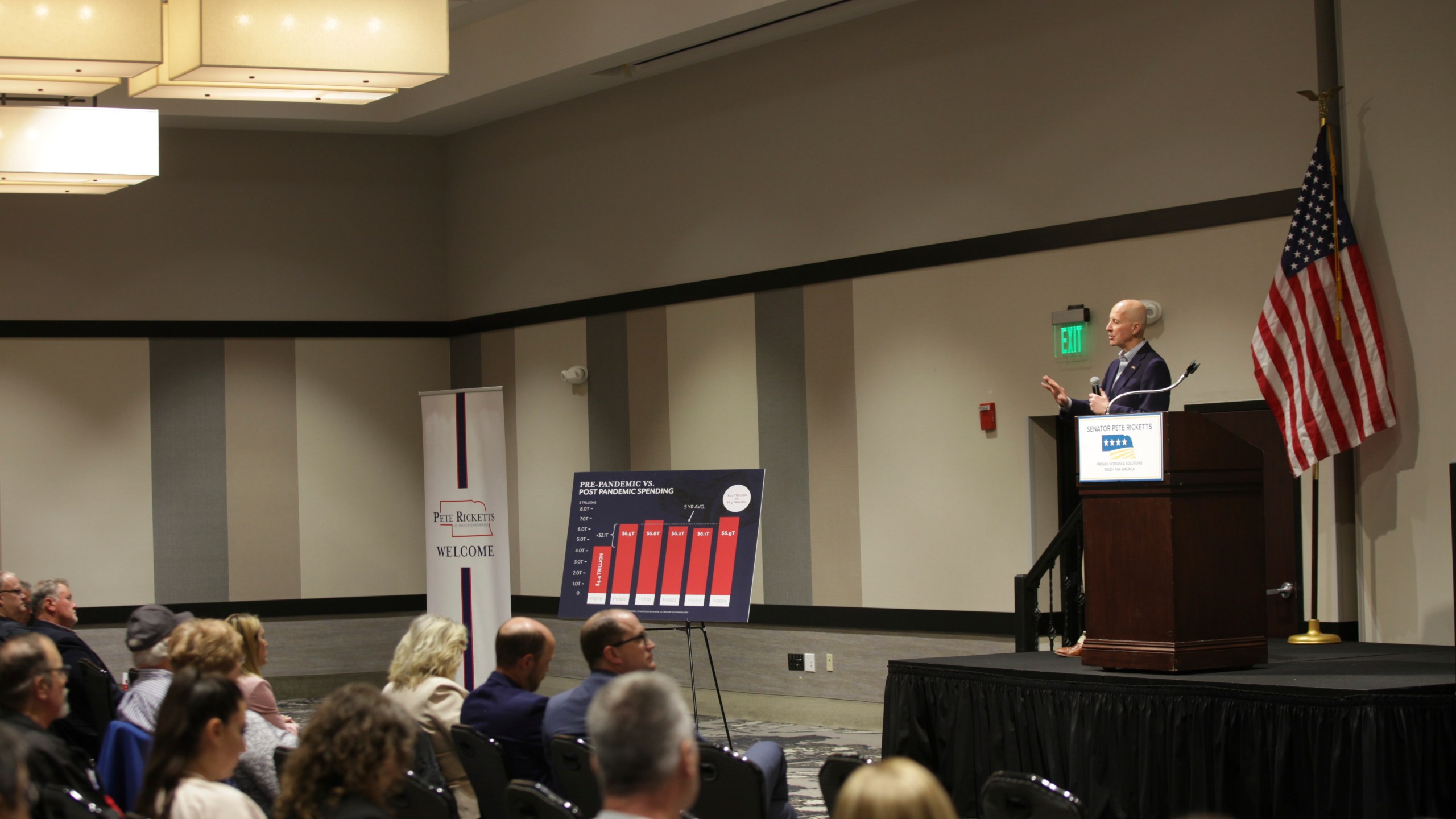 “We gotta, again, get that spending under control,” Ricketts said, prompting grumbling from the audience of more than 100 at an events center in Kearney, 185 miles (roughly 300 kilometers) west of Omaha.