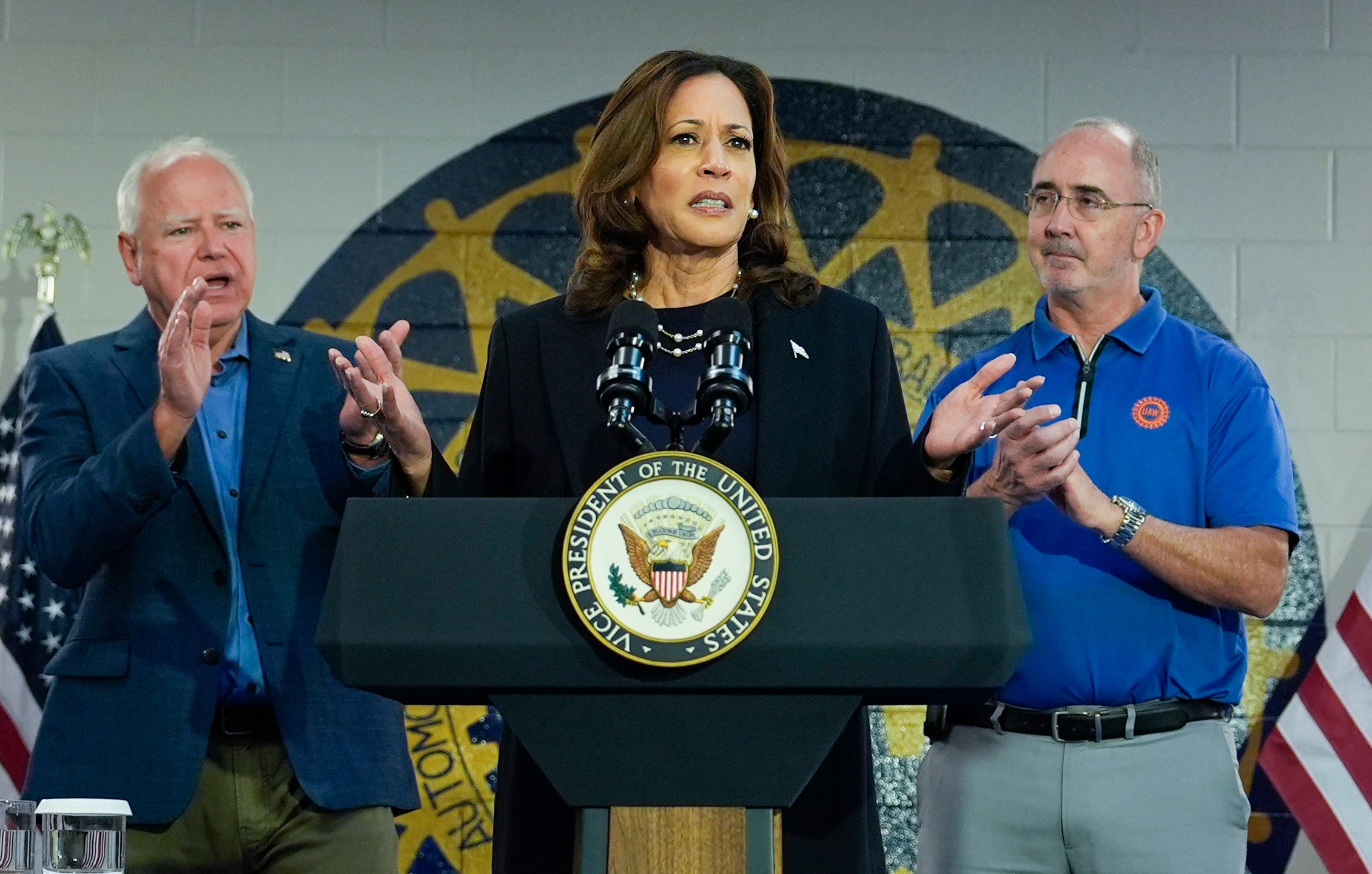 Vice President Harris and Minnesota Gov. Tim Walz showed their support for organized labor by appearing at a United Auto Workers event in Detroit.