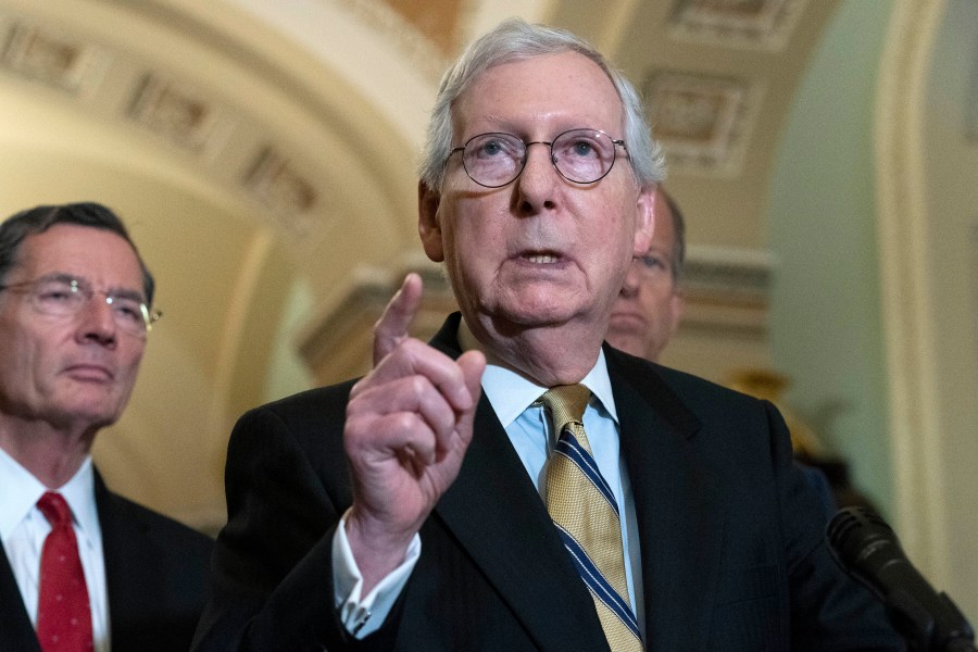 Senate Minority Leader Mitch McConnell, R-Ky., speaks to the media after a GOP policy luncheon on Capitol Hill in Washington, Tuesday, July 20, 2021. (AP Photo/Jose Luis Magana)