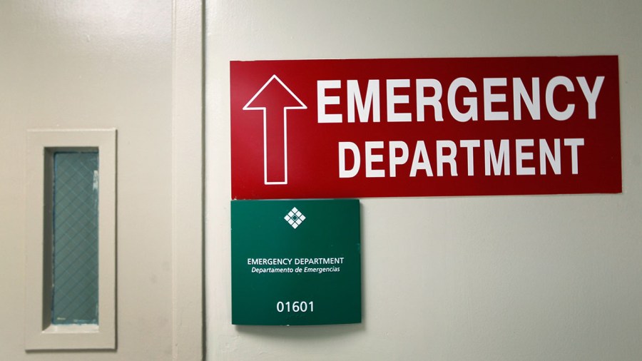 FILE: A sign giving direction to a hospital emergency department hangs on a wall. (Photo by Joe Raedle/Getty Images)