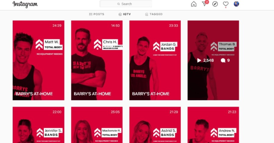 Barry’s Bootcamp is turning to Instagram, where they have trainers doing vertical video workouts.