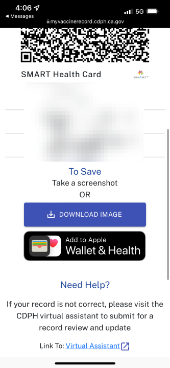 Next, go to California’s Digital COVID-19 Vaccine Record portal. Fill out the form and you’ll get a text within seconds with a link to your digital QR code and vaccine record. During this process, you’ll have to create a 4-digit PIN. It’s a good idea to write down these digits so you don’t forget them. You’ll need them for the next step.