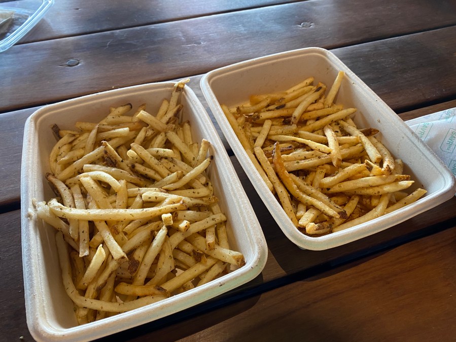 When I tasted the fries, the difference was very clear. The fries in the box without the sticker were the typical soggy and limp fries you’d expect from takeout or delivery. The fries in the box with the sticker were noticeably drier and crispier.