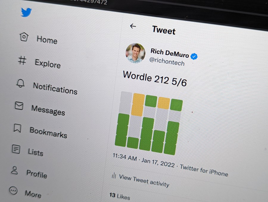 Part of the game’s appeal is bragging rights. When you solve a puzzle, you can share how many tries it took you on social media.