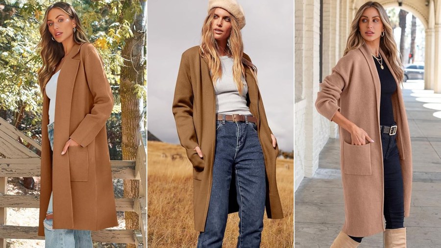 These oversized cardigan-coat hybrids have taken over TikTok and Instagram feeds, showing up in airport outfit posts, coffee run content and fall capsule wardrobes. They deliver coat-level warmth and coverage without the commitment of actual outerwear. You can wear a coatigan indoors without looking ridiculous, layer it over everything from athleisure to dresses and throw it in your bag when temperatures shift. The oversized, drapey silhouette flatters most body types while providing the cozy factor that makes fall dressing appealing.