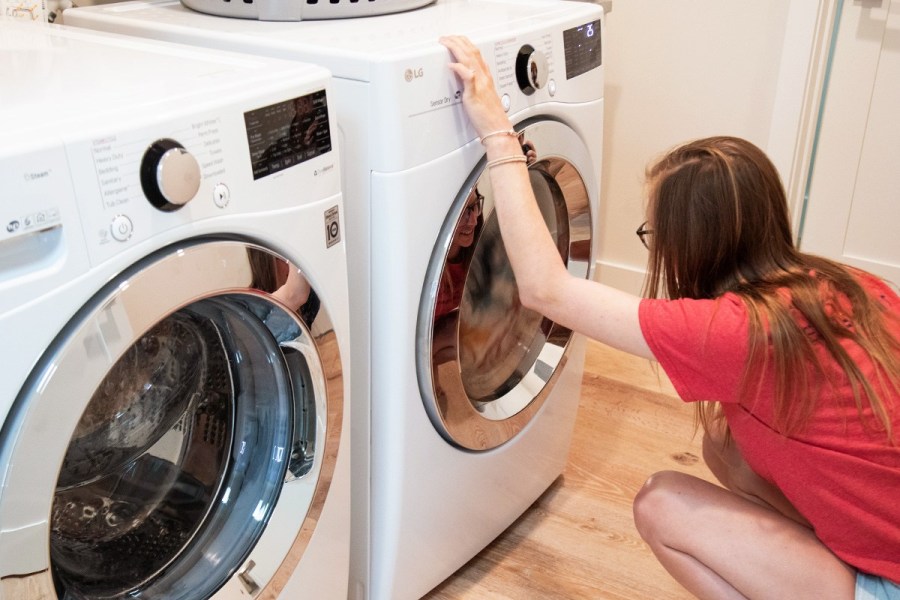 This smart gas dryer is able to detect just about everything going on inside of it. It has automatic sensors for determining the right temperature. It has an alert for dampness, plus a sanitize feature for killing bacteria.