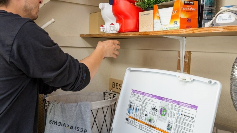 This washer has a built-in faucet and comes with a brush so you can pretreat stains right in the drum. The controls are easy to understand, and a dispenser drawer lets you load up your cleaning solutions so they can be injected into the wash at the optimal time.