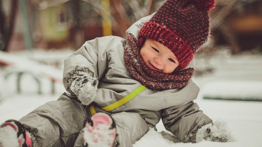 A. As long as they are warm enough, your baby doesn’t need to wear a lot of layers under their snowsuit. They should wear a diaper, shirt, pants and socks for warmth. Choosing baby clothes that keep them warm also means fewer layers to take off when you go inside.