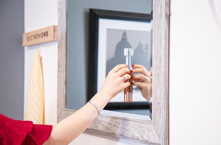 Toothbrush sanitizers often use UV-C light to kill up to 99% of the bacteria on toothbrush bristles. These usually hold three to five toothbrushes and can be mounted on your wall. High-end models include toothpaste dispensers and a fan to dry your toothbrush after use.
