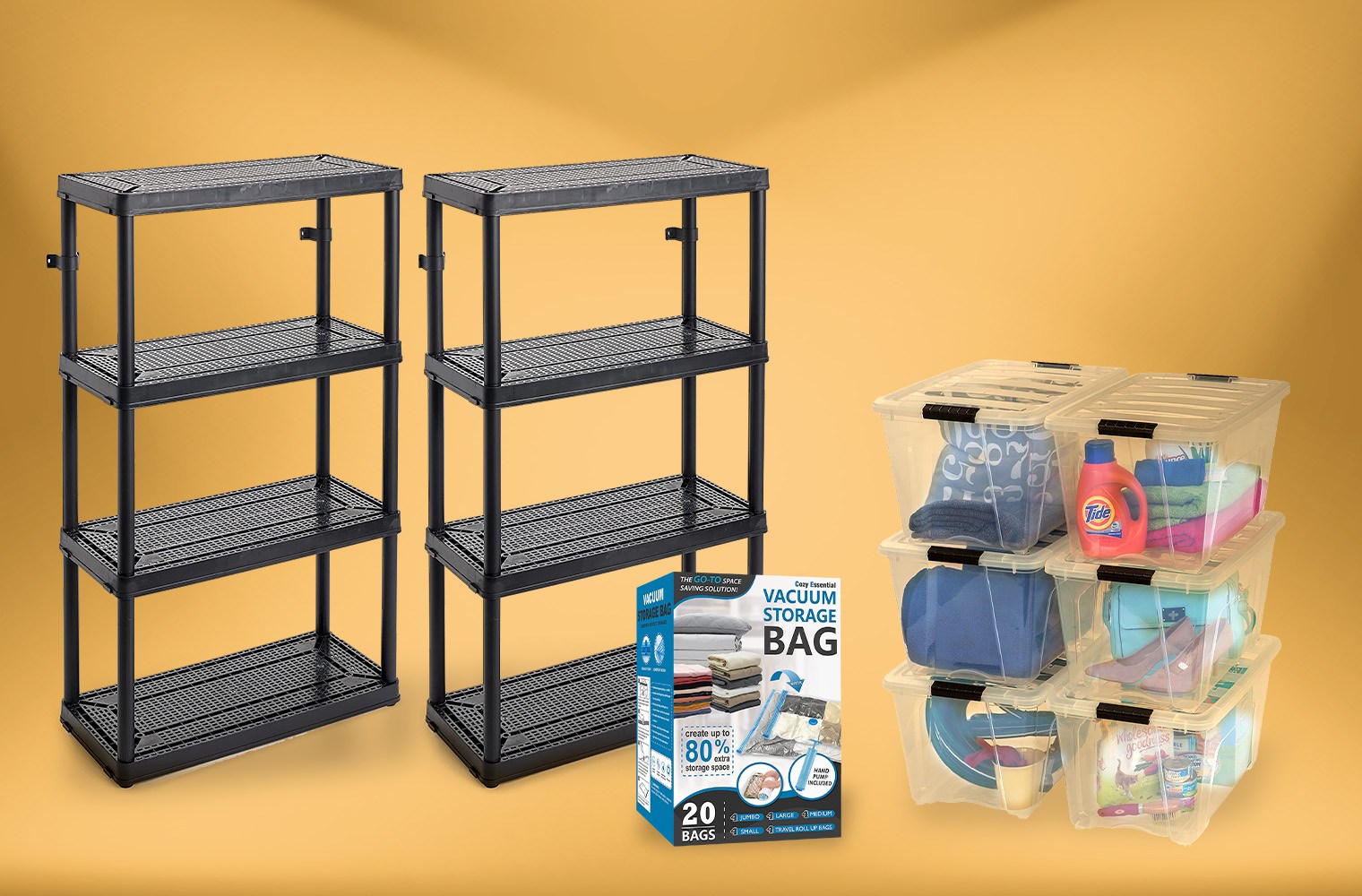 These 18-gallon storage containers are big enough to fit several articles of clothing, blankets, toys, decorations and more. The heavy-duty build keeps contents secure and makes them ideal for transporting your stuff to a different room or location. Plus, they can withstand temperature changes from 0 to 110 degrees.