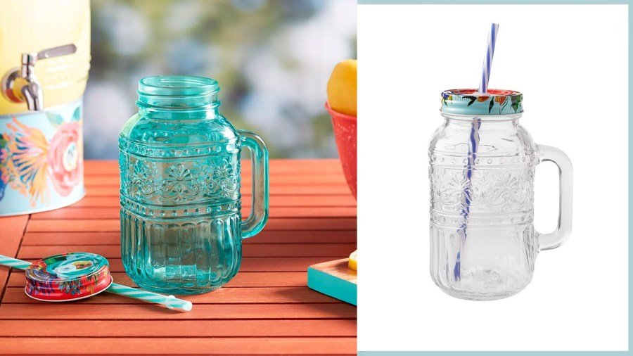 Shop this article: The Pioneer Woman Cassie 32-Fluid-Ounce Mason Jar Tumbler, Teal, The Pioneer Woman Cassie 32-Fluid-Ounce Mason Jar Tumbler, Clear, A Akraf Drinking Glasses with Bamboo Lids and Glass Straw