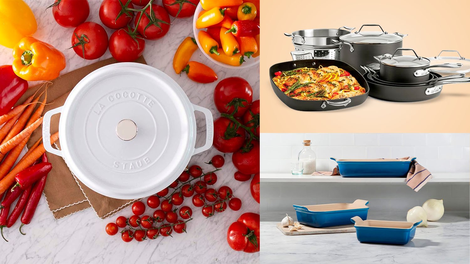 Shop this article: STAUB Cast-Iron Dutch Oven 4-Quart Round Cocotte, Le Creuset Stoneware Heritage Set 3 Rectangular Dishes and Calphalon 10-Piece Pots and Pans Set