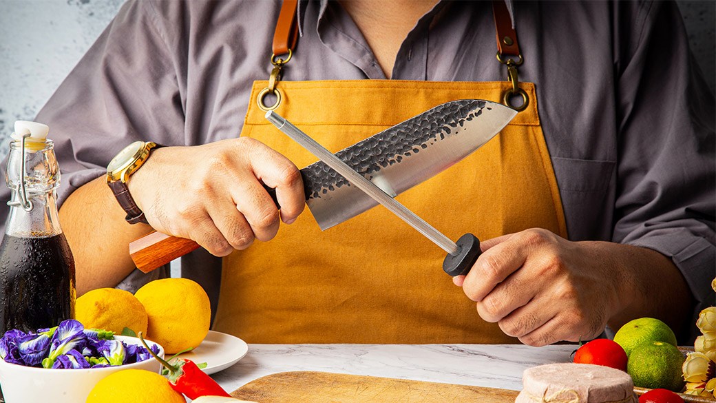 Some knives feature a hand-hammered design crafted by hand by skilled blacksmiths. Not only does this feature give a rustic look to the knife, but the indentations can also prevent food from sticking to the handle.