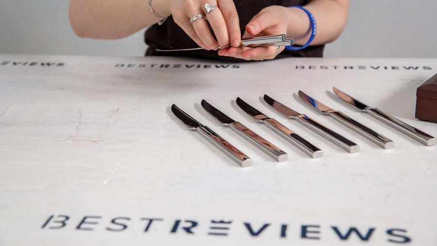 A good place to start is with the Oster Baldwyn 22-Piece Cutlery Set, one of the best Oster has to offer. This complete set has every type of knife you’ll need, plus a pair of scissors and a sharpener to keep your knives in good shape.