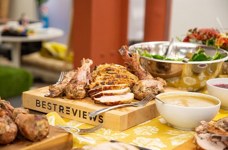 Featuring sturdy stainless steel tines and comfortable, nonslip handles, these lifters make it easy to move your turkey from the roasting pan to the cutting board. They can lift up to 25 pounds and come with protective caps for storage.