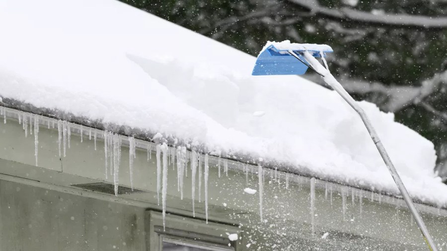 What you’ll love: The blade head is 16 inches wide and uses a 15-foot-long oxford cloth tarp to guide snow off the roof, so it won’t gather in your eaves.