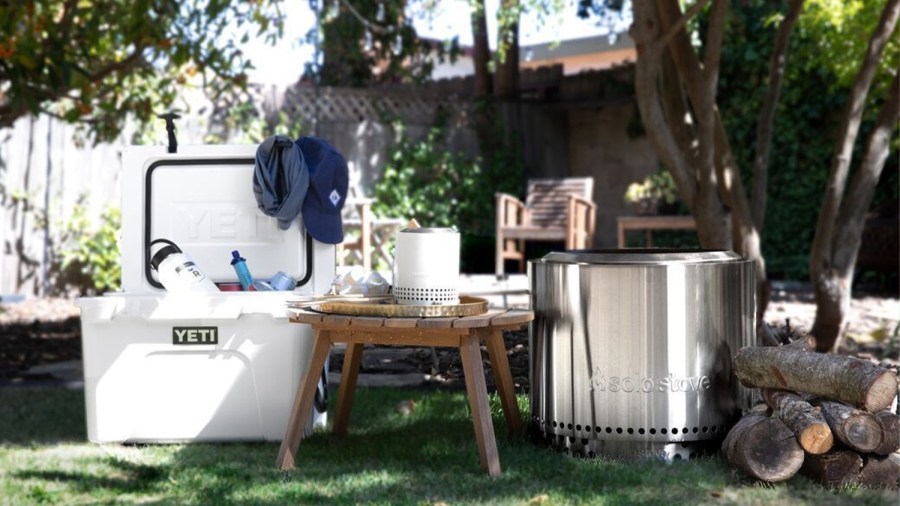 Shop this article: Solo Stove Bonfire 2.0, Yeti Tundra 35 Cooler and Furinno Tioman Hardwood Armchair.