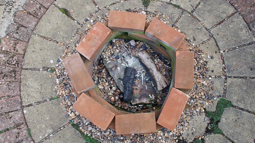 Make sure you’re a safe distance — at least 15 feet — from other structures, plants and low-hanging tree branches. Local ordinances may require your fire pit to be as far away as 30 feet.