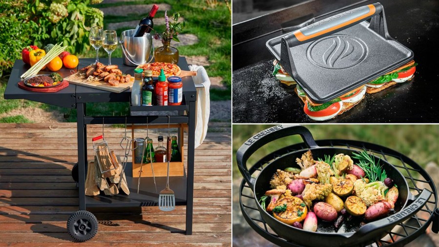 In this article: Arlmont & Co. Saaba Outdoor Grill Cart, Blackstone Cast-Iron XL Griddle Press and Cuisinart Sauce Pot and Basting Brush Set