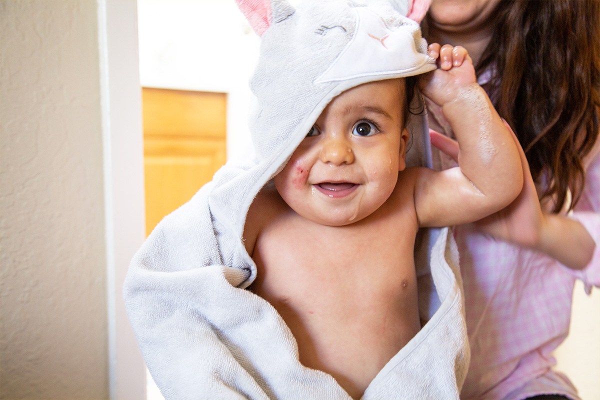 - With an adorable animal face, the Hudson Baby Cotton Hooded Towel will dry your little one off while remaining gentle on their skin.