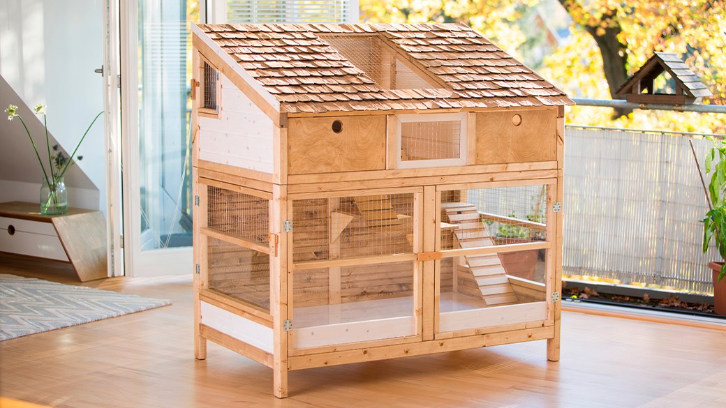 What you need to know: With plenty of compartments to move around and hide out in, this two-tier rabbit hutch is great for pairs.