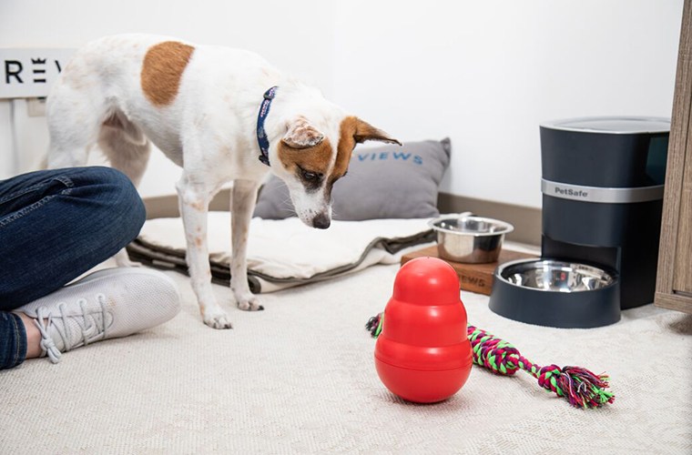 This offers a high-tech solution for feeding and communicating with your pets while you’re away. It has a wide-angle camera that can rotate, ensuring a 360-degree view.