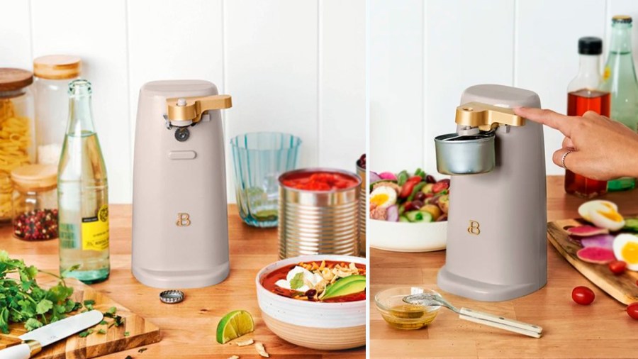 “I absolutely love this can opener!! It is the perfect size for my counter,” one five-star review reads. “This is such an improvement from the cheap handheld I was using before. I can open 5-6 cans in minutes. …