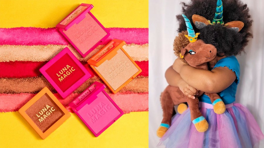 Shop this article: Afro Unicorn Plush Animal, Kate and Laurel Sylvie Beach Solo Framed Canvas Wall Art by Queenbe Monyei and Black Opal True Color Skin Perfecting Stick Foundation