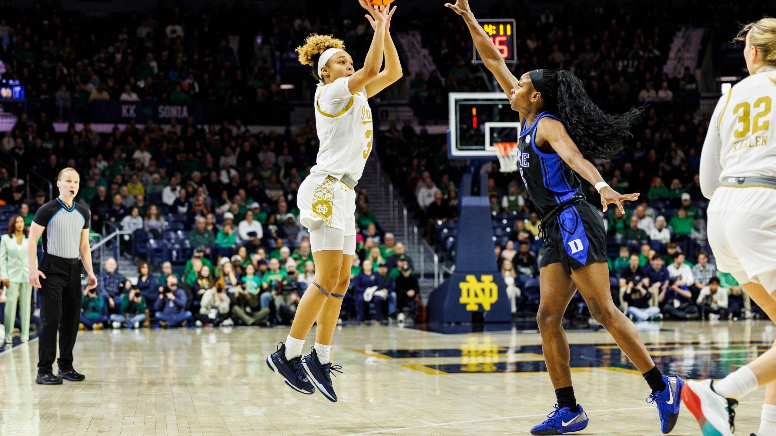 The Fighting Irish, who are No. 1 for the first time since 2019, topped Duke 64-49 on Monday night. They have a busy week ahead with games at Miami on Thursday and N.C. State on Sunday.