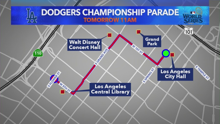 The championship parade will be the Dodgers’ first since 1988. The team didn’t hold an official parade after their 2020 title due to the COVID-19 pandemic.