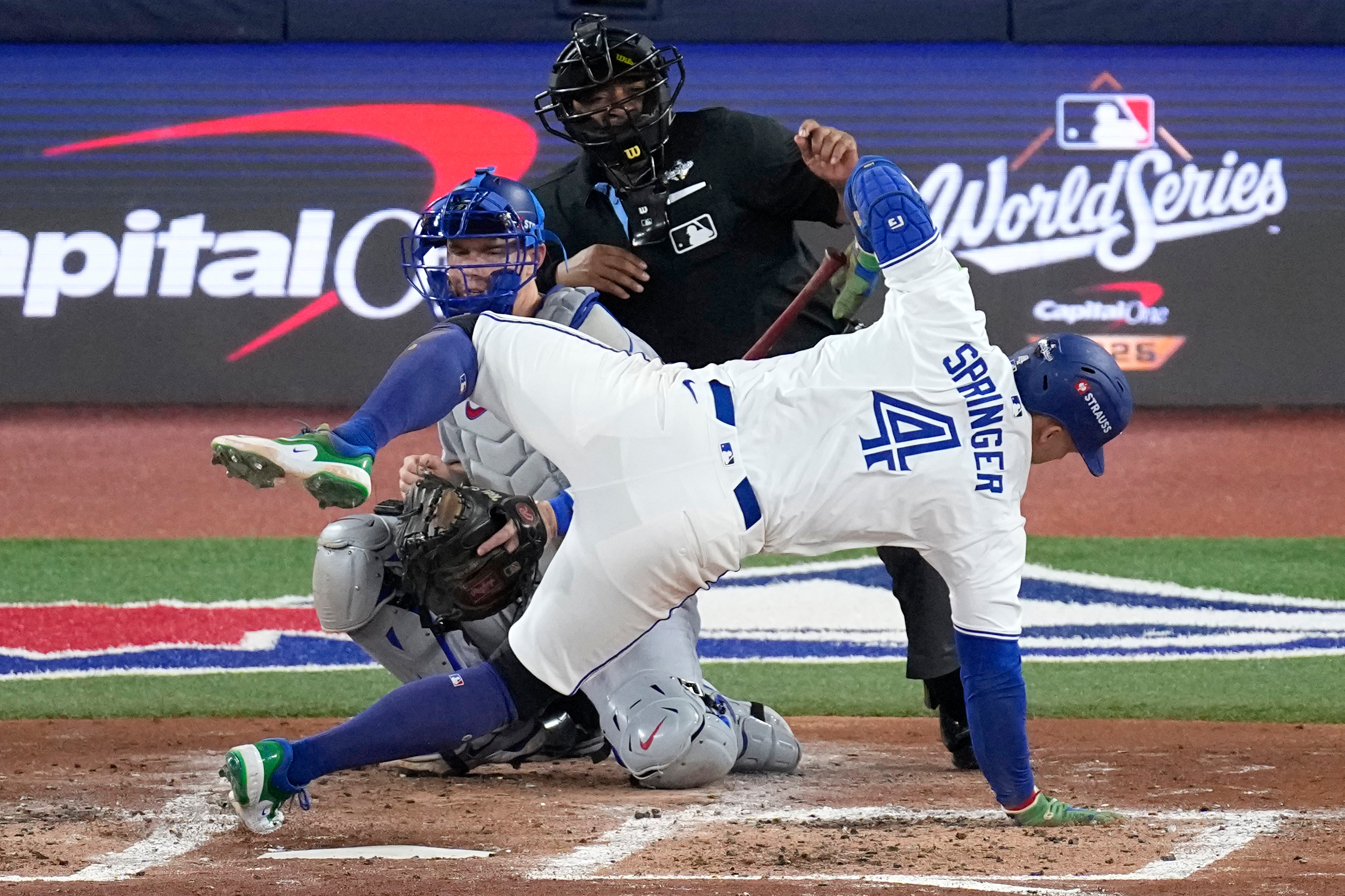 Springer’s double and Nathan Lukes’ single put runners at the corners with no outs in the bottom half but Yamamoto struck out Guerrero, retired Kirk on a liner to first and froze Daulton Varsho with a called third strike.