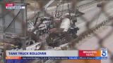 A big rig rolled over on the transition from the southbound 5 Freeway to the 60 Freeway on Saturday morning. Details: KTLA.com